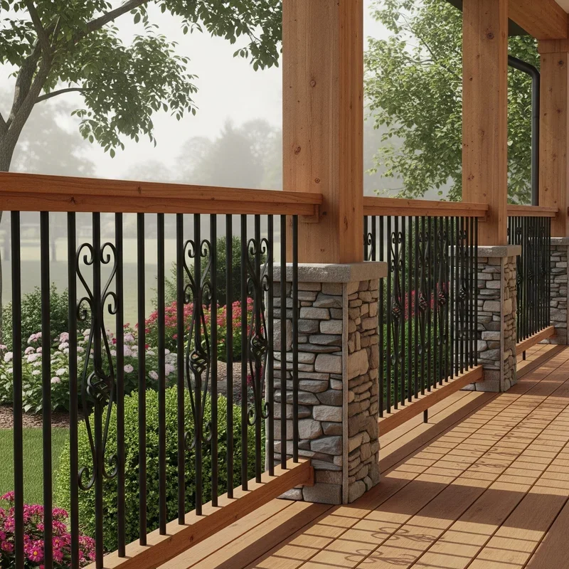 Why settle for one material when you can create a custom masterpiece by mixing and matching? Combining materials like wood posts with metal balusters or stone pillars with cable systems creates unique, eye-catching designs that set your home apart. It's like being a DJ but for porch railings! These hybrid designs allow you to highlight your home's best features while adding layers of visual interest. Popular combinations include aluminum frames with wood top rails or iron balusters with composite boards. The key is balancing materials that complement each other in color, texture, and style. This approach lets you maximize the benefits of different materials while minimizing their drawbacks. Your porch becomes a showcase of creativity that reflects your personal style while boosting curb appeal dramatically.
