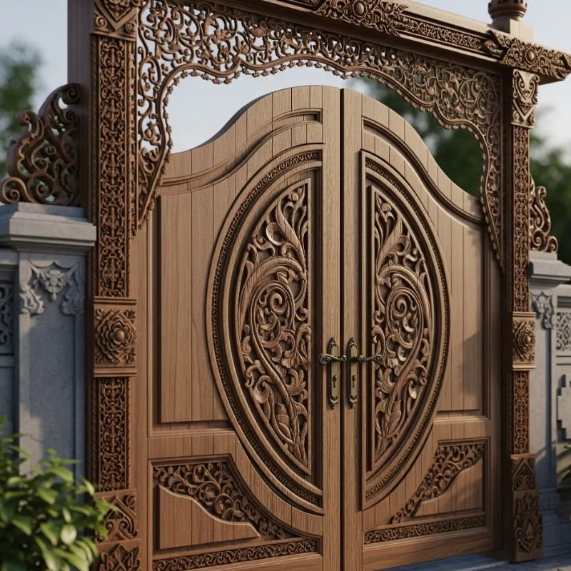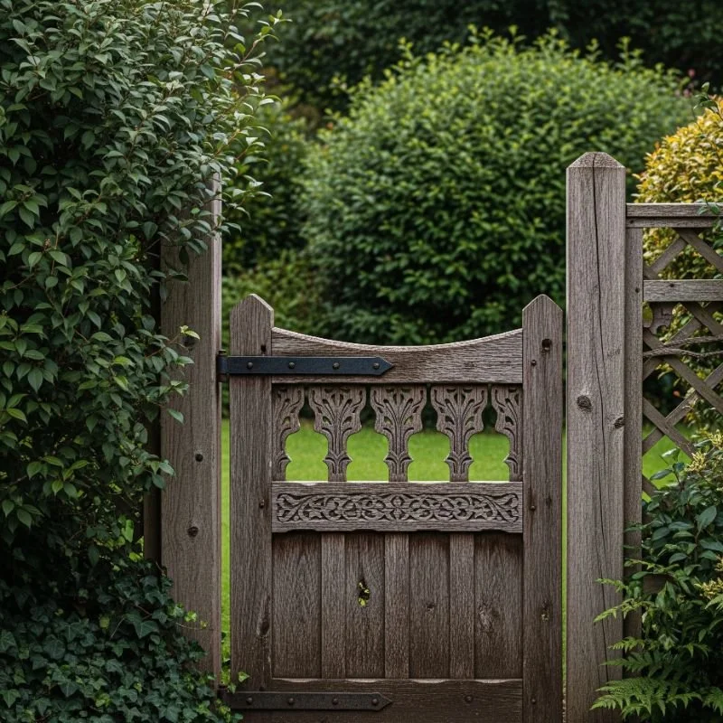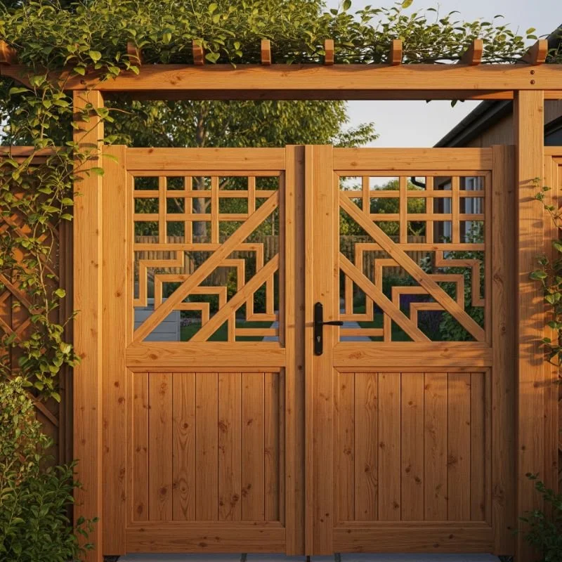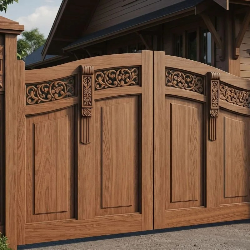 Transform your entrance into an unforgettable artistic statement with custom carved wooden gates that showcase sculptural craftsmanship while establishing your property's distinctive personality. These bespoke creations feature hand-carved or CNC-machined designs ranging from family crests to botanical motifs, landscape scenes, or abstract patterns that reflect your personal aesthetic. Commission using substantial hardwoods like mahogany, walnut, or white oak that provide both carving stability and weather resistance, then finish with multiple protective coats that preserve the detailed craftsmanship. These gates create immediate visual impact while communicating unique stories impossible to replicate through mass-produced alternatives. For maximum preservation, consider positioning within protected entryways or incorporating overhangs that shield the detailed carving from direct weather exposure. The one-of-a-kind nature of these gates transforms property entrances into personal galleries that showcase artistic values while creating distinctive first impressions visitors will remember and discuss. Like wearable art that instantly communicates personal style, these sculptural entrances transform ordinary thresholds into narrative-rich introductions to the distinctive property experience that awaits beyond.