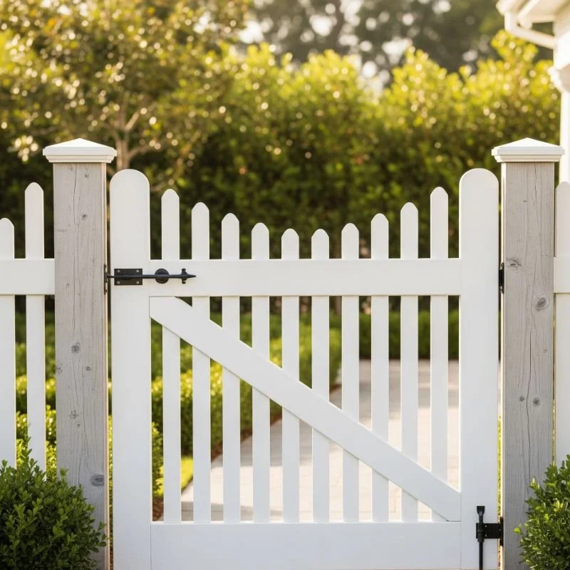 Transform your property entrance with the timeless appeal of a Hamptons-inspired white picket gate that instantly communicates welcoming elegance. This quintessential American design pairs pickets with crisp white paint to create an entrance that feels simultaneously polished yet approachable. For maximum impact, select pickets with decorative tops—traditional spear points work beautifully for colonial-style homes, while gentle curves complement cottage aesthetics. Install the gate within a matching fence section that frames the entrance, creating a deliberate threshold moment rather than a standalone barrier. The white finish requires maintenance to maintain its pristine appearance, but this upkeep represents a worthwhile investment in your home's presentation. This style particularly complements traditional architecture, seaside properties, and landscaping featuring hydrangeas, roses, or lavender plantings. Like a perfect string of pearls with a classic black dress, this gate style never goes out of fashion while significantly elevating your property's first impression.