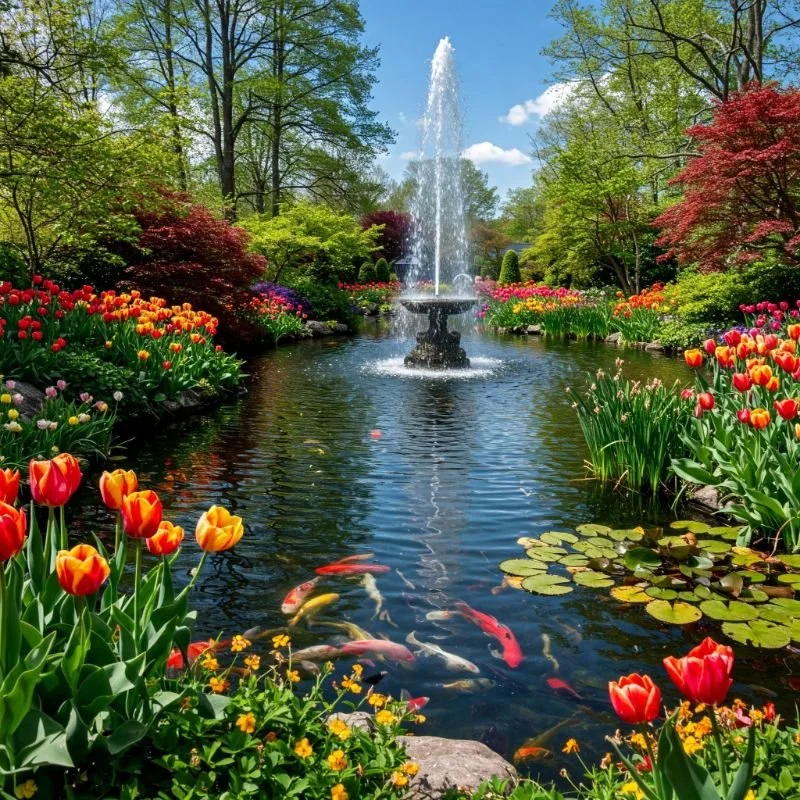 9. Pond-Integrated Fountain for Natural Charm