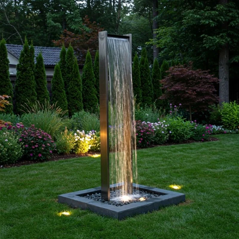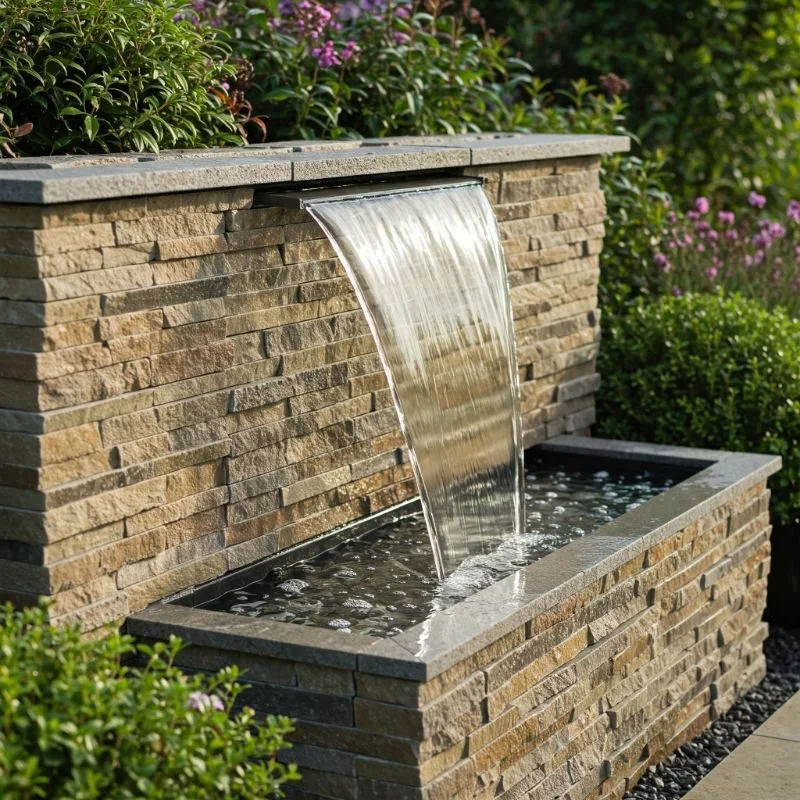 If you yearn for a clean, minimalist look that still catches the eye, a water blade fountain might be your ideal pick. Here, water pours from a thin, rectangular spout—like a glimmering curtain—into a basin below. The effect is mesmerizing, reminiscent of liquid glass. These fountains are often installed against a wall or within a raised structure, blending seamlessly with modern landscaping. Add a row of decorative rocks at the bottom, or integrate colored lighting to turn this feature into a nighttime showpiece. The uniform flow of water creates a soothing white noise that can help drown out traffic or neighborhood commotion. It’s the perfect finishing touch for a sleek patio, an urban courtyard, or any space craving a dash of modern sophistication with minimal fuss.