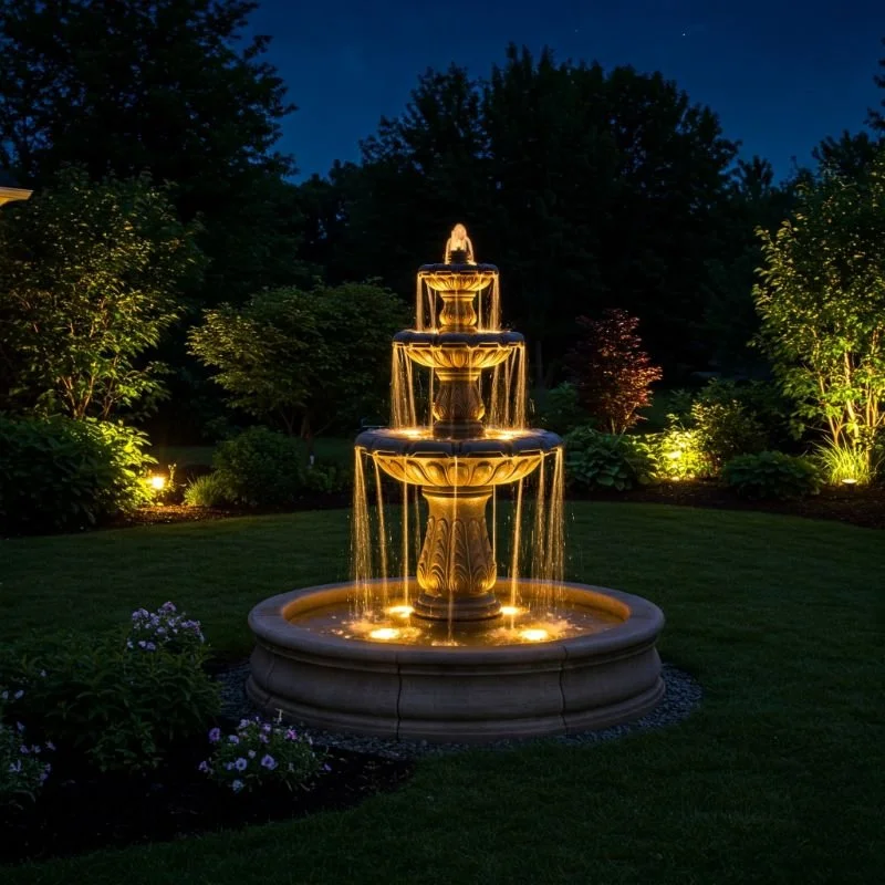 LED or underwater lighting can create a dramatic glow that highlights the water’s movement. Timers and light sensors make it easy to automate nighttime illumination, turning your fountain into an enchanting after-dark feature.