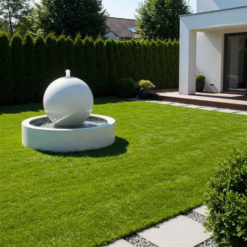 If your taste leans toward clean lines and sleek silhouettes, a modern minimalist sphere fountain might be just what you need. A polished orb perched on a concealed basin exudes a certain futuristic allure, like it belongs in a contemporary sculpture garden. Water cascades smoothly over the ball’s surface, reflecting sunlight in gentle ripples that dance across your yard. You could opt for stainless steel for a mirror-like finish or natural stone for a subdued, earthier vibe. Either way, this style proves that “less is more” can pack a serious visual punch. Place it in the center of a gravel patio or among low-maintenance succulents for a truly modern look. With its uncluttered design, the sphere fountain invites you to pause and appreciate the simplicity and serenity of flowing water.